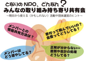 となりのNPO、どんなん?みんなの取り組み持ち寄り共有会 ~明日から使える(かもれしれない)活動や団体運営のヒント~ 活動や団体運営のお困りごとを持ち寄り みんなの経験を共有しながら 活動のヒントを見つけましょう あなた […]